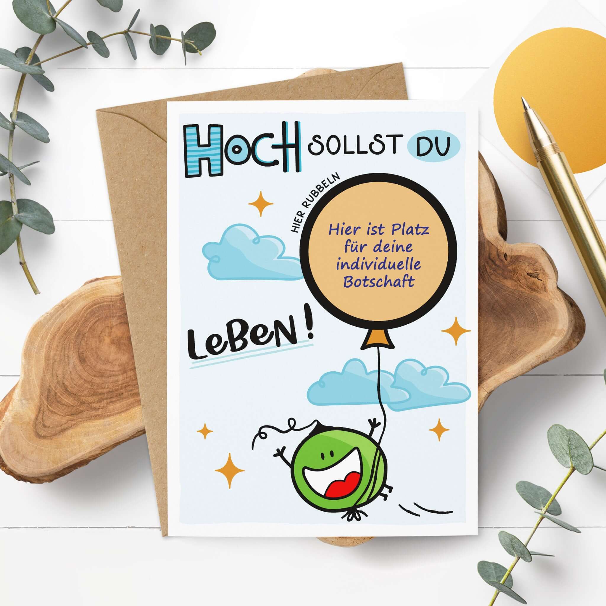 🎈 Einzigartiges Rubbeldesign: Verstecke deine persönliche Botschaft unter dem goldenen Ballon