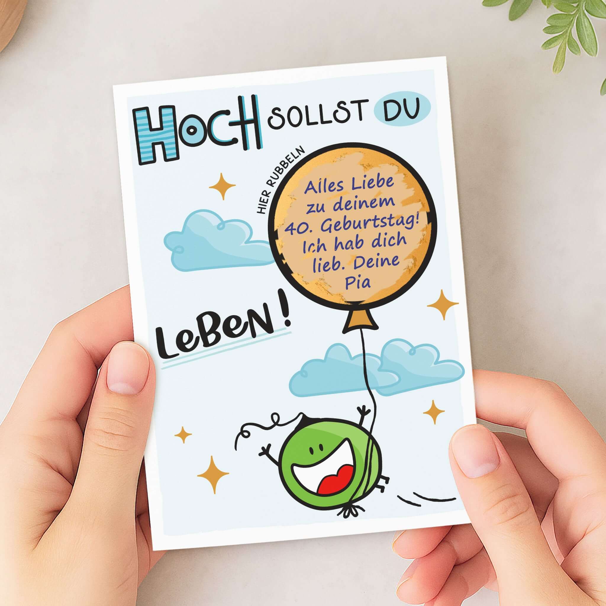 Manchmal braucht ein Glückwunsch das gewisse Etwas – und genau dafür ist diese Rubbelkarte gemacht. Sie bringt Freude, Überraschung und Persönlichkeit in einem: Unter dem goldenen Ballon versteckt sich deine ganz eigene Botschaft, die erst freigerubbelt wird. So wird aus einem einfachen „Alles Gute“ ein echtes Erlebnis mit Wow-Effekt!